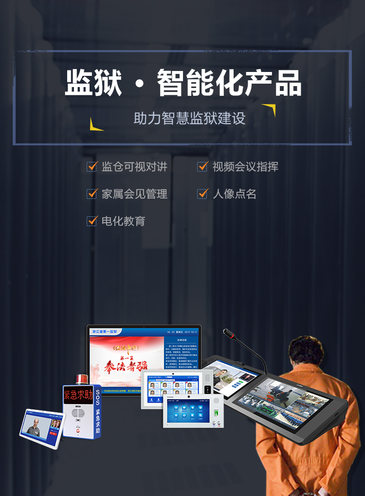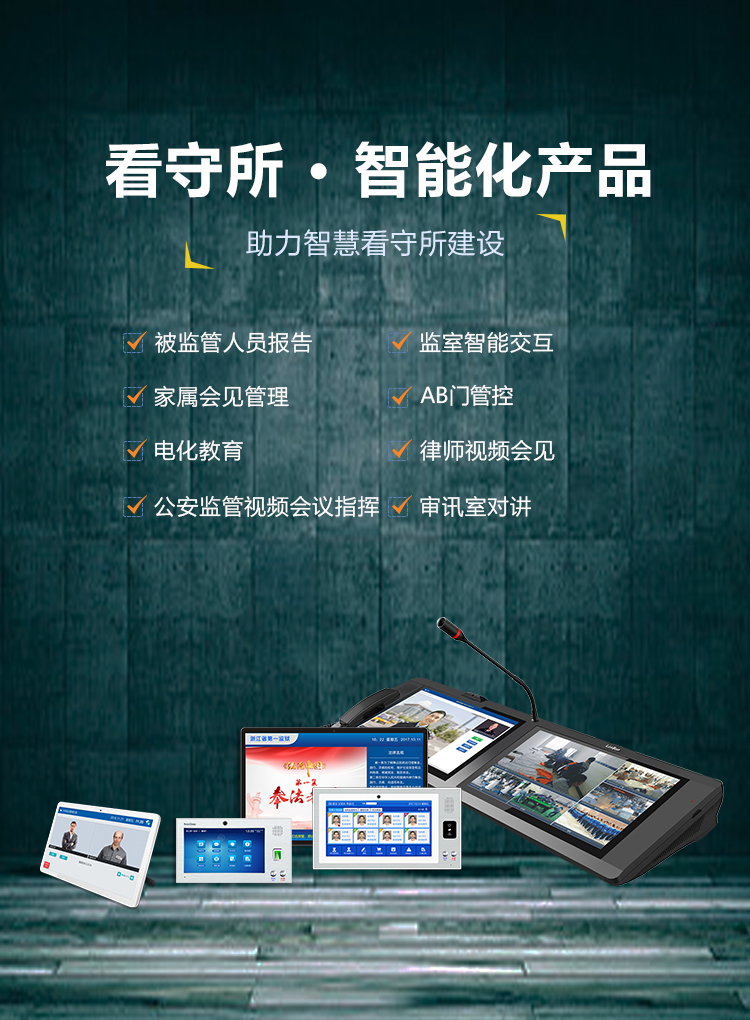 整合看守所六大子系统,具有被监管人员报告、家属会见管理、电化教育、律师视频会见、公安监管视频会议指挥等,为看守所提供智能一体化解决方案。