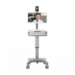 ? 标配一路4K高清全景摄像机,22英寸触控一体机(内置5G插卡模块)、全向麦克风、内置30AH锂电池等。