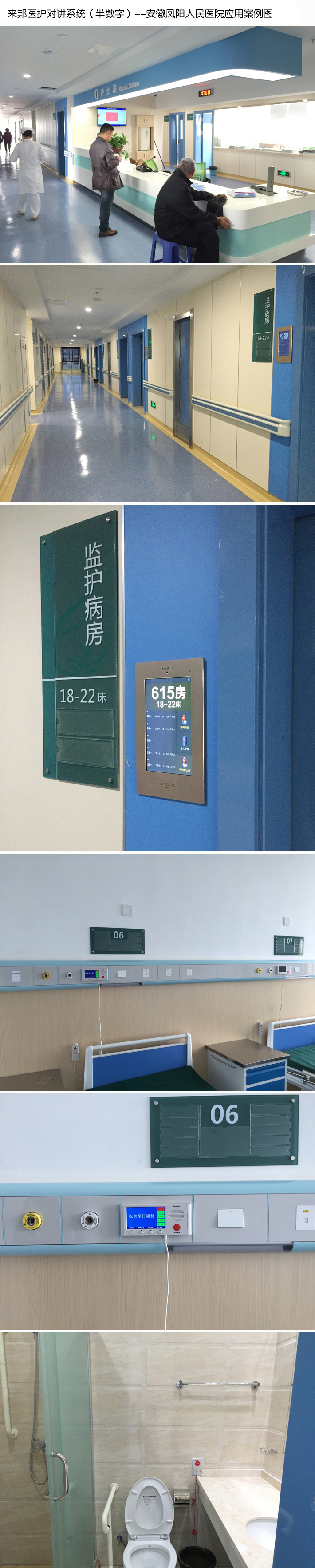 护理状态等;同时,在每个病房的卫生间内各安装1台防水按钮,供病人紧急情况下报警。
