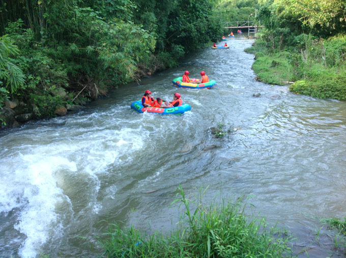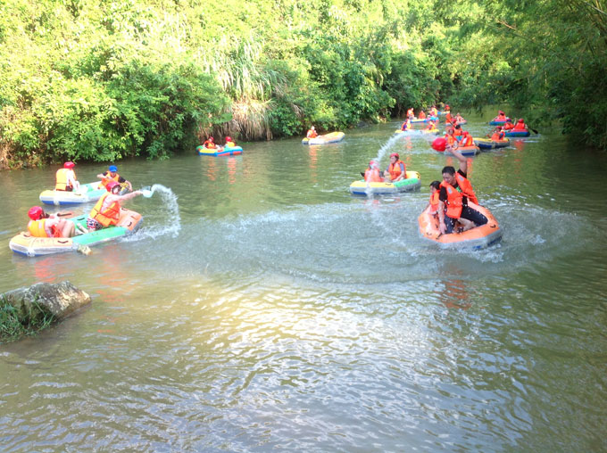 公司员工及部分家属雷公峡漂流山脚集体合影: