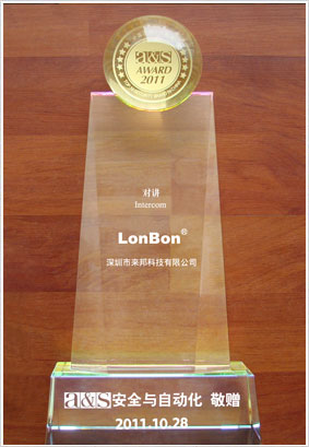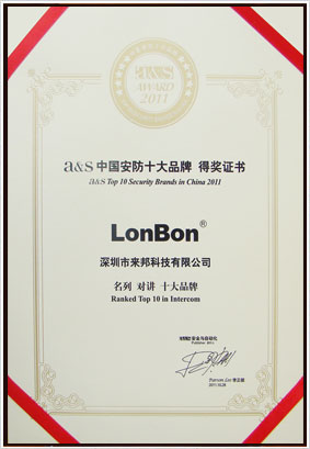 2011年10月28日,由A&S举办的2011年度“中国安防十大品牌”颁奖活动在深圳隆重举行。百乐博bIbo在全国223个对讲品牌中脱颖而出,这是百乐博bIbo连续八年蝉联“中国安防十大品牌”奖项。