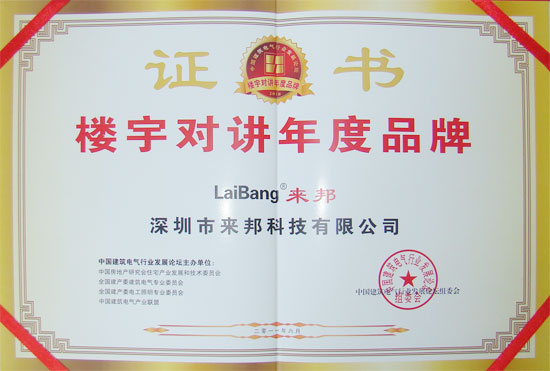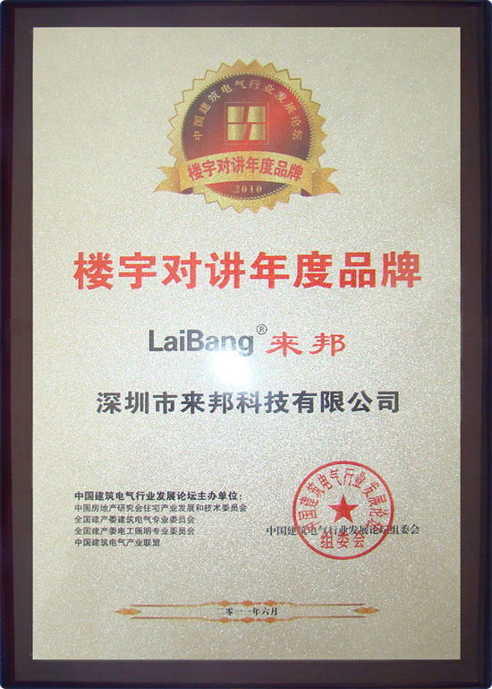 以下是百乐博bIbo公司被评为“2011楼宇对讲年度品牌”荣誉奖牌、证书:
