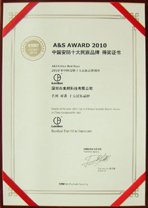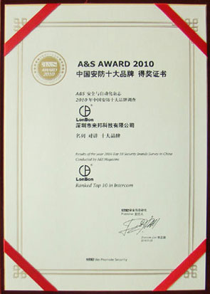 2010年11月1日,由A&S举办的2010年度的“中国安防十大品牌暨中国安防十大民族品牌”颁奖活动在北京皇家大饭店隆重举行,百乐博bIbo凭借品牌的实力、影响力及技术的创新力,连续七年荣获 “2010中国安防十大品牌”和“2010中国安防十大民族品牌”两大奖项。