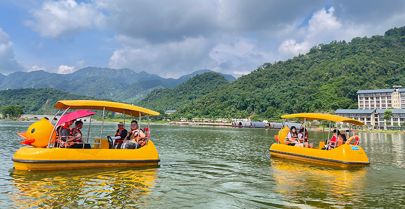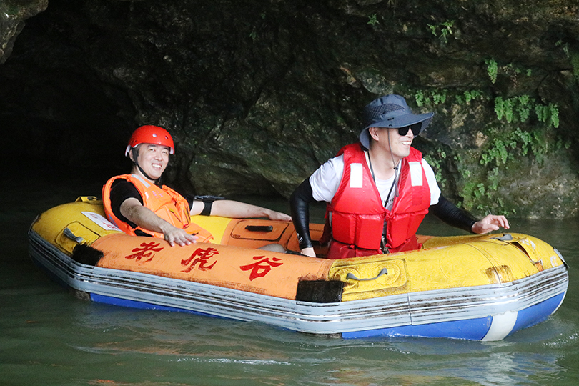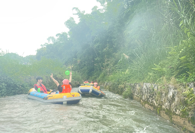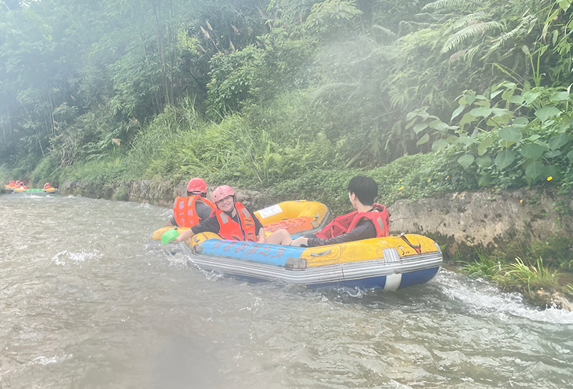 景点二:老虎谷漂流。广东唯一穿越岩洞的暗河漂流,以水流急、高落差、林奇山秀及岩洞幽深享誉海内外。在漂流中,让大家体验到了激流勇进、乘风破浪的快乐和勇气。