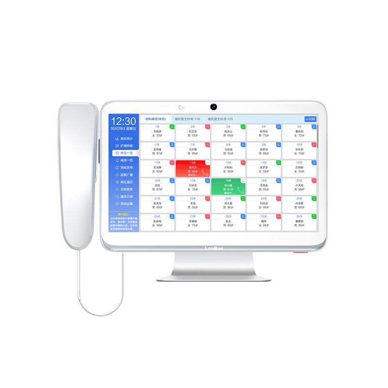 ? 采用13.3英寸触摸显示屏,含摄像头,支持1080P高清视频,桌面式安装在护士站。
