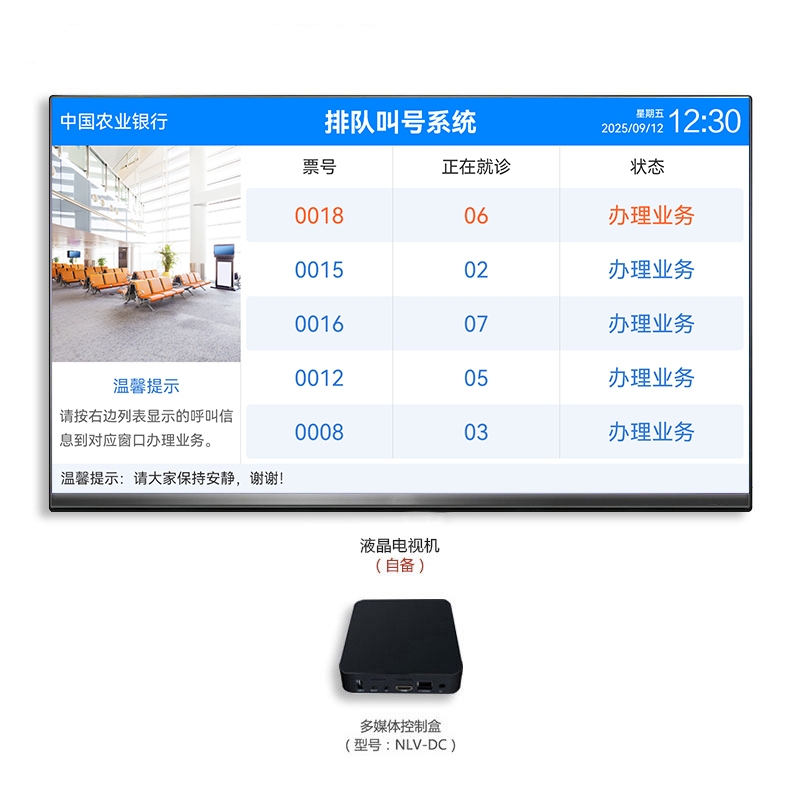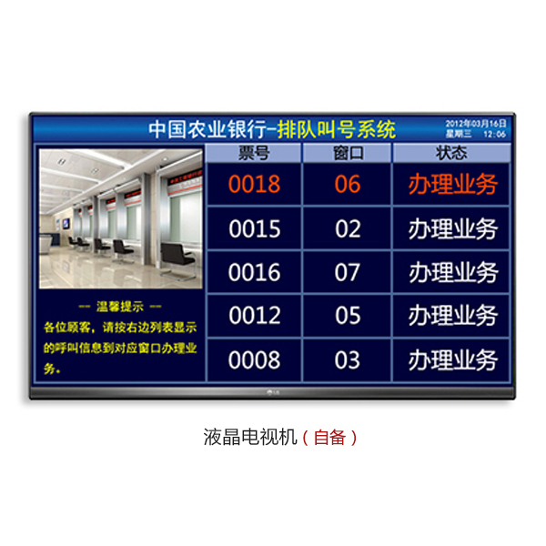 ? 具有显示票号信息、窗口信息、业务状态、播放视频、显示文字通知、接收信息发布、HDMI输出等功能。