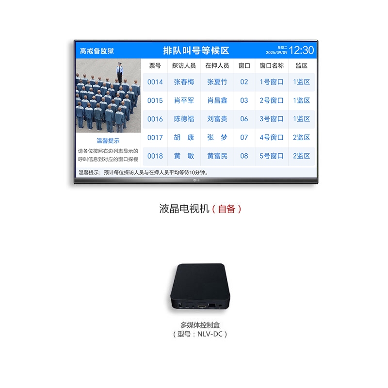 ? 控制盒通过HDMI方式连接液晶电视,安装在家属、在押人员会见区等场所。
