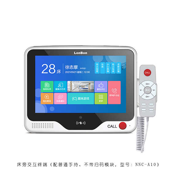 ? 具有可视对讲、视频探视、换药提醒、信息显示、费用查询、刷卡签到、蓝牙体征设备对接等功能。