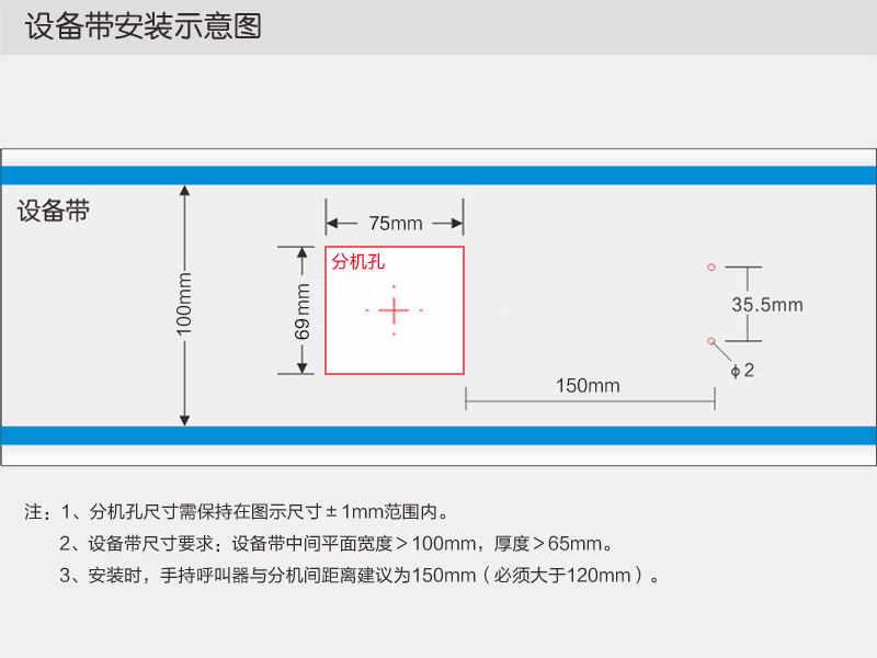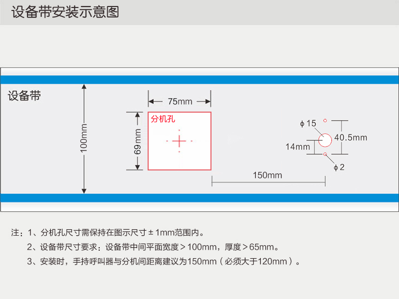 安装时,手持呼叫器与分机间距需保持≥15cm。
