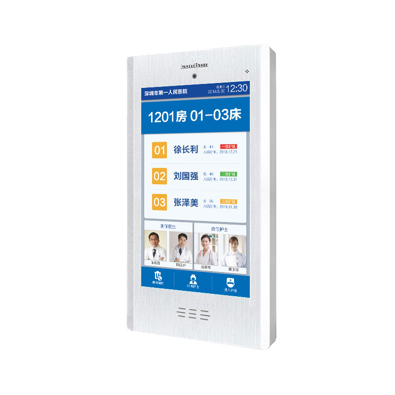 ? 具有呼叫对讲、呼叫解除、进入护理,显示房床号、患者信息、责任医生护士姓名及照片等功能。