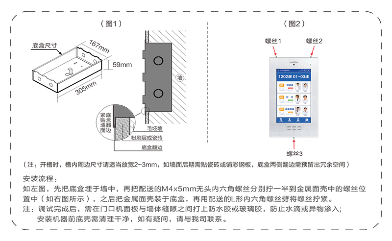 ? 采用10.2英寸触摸显示屏,铝合金边框,病房门口嵌入式安装。