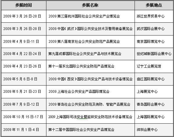 《2009上海国际司法安全暨监狱防范技术设备博览会》将于2009年10月15日-17日在上海举办,届时我公司参加,欢迎新老顾客莅临、参观指导。